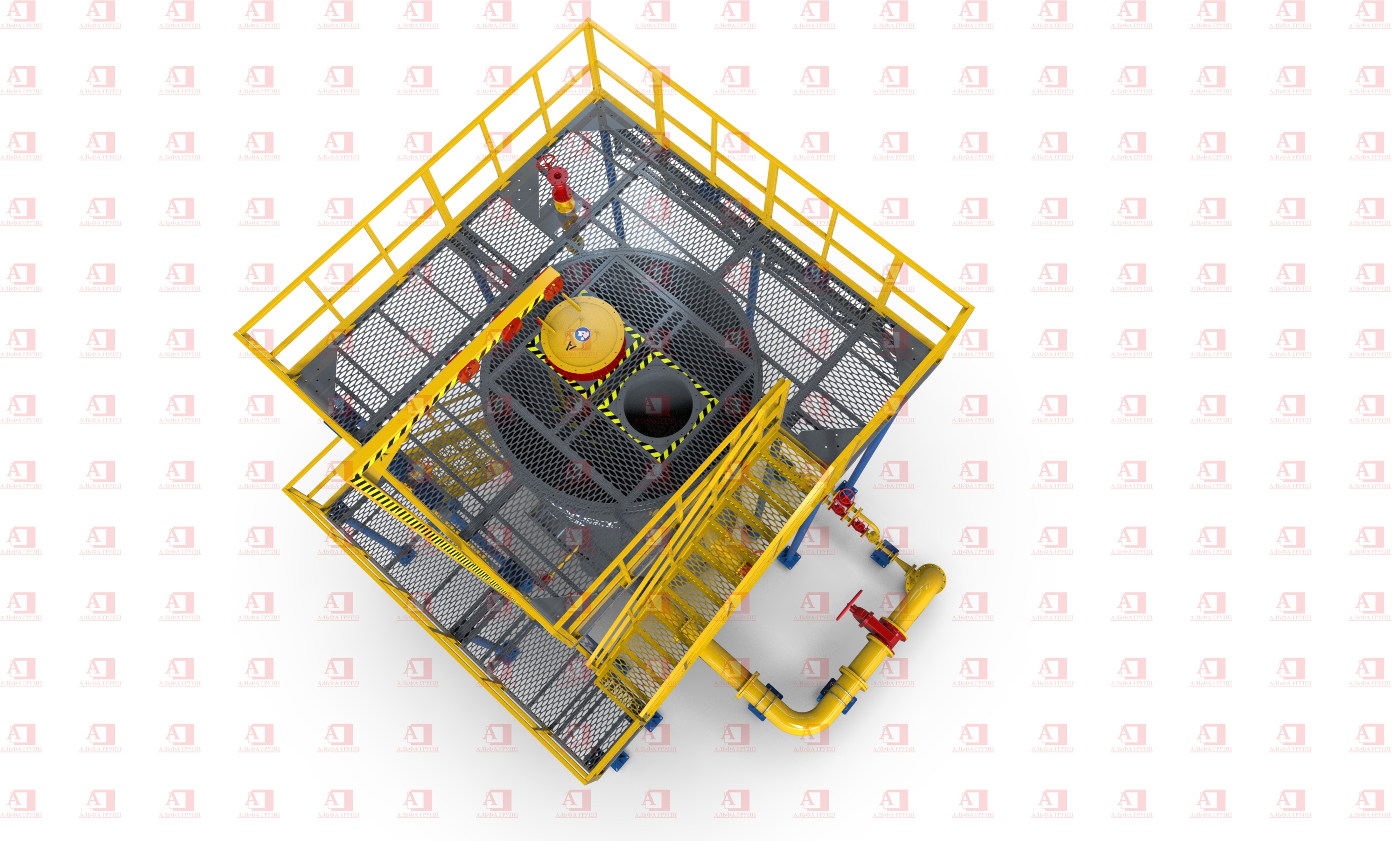 Доступ на рабочую площадку второго уровня осуществляется по стальной маршевой лестнице.
