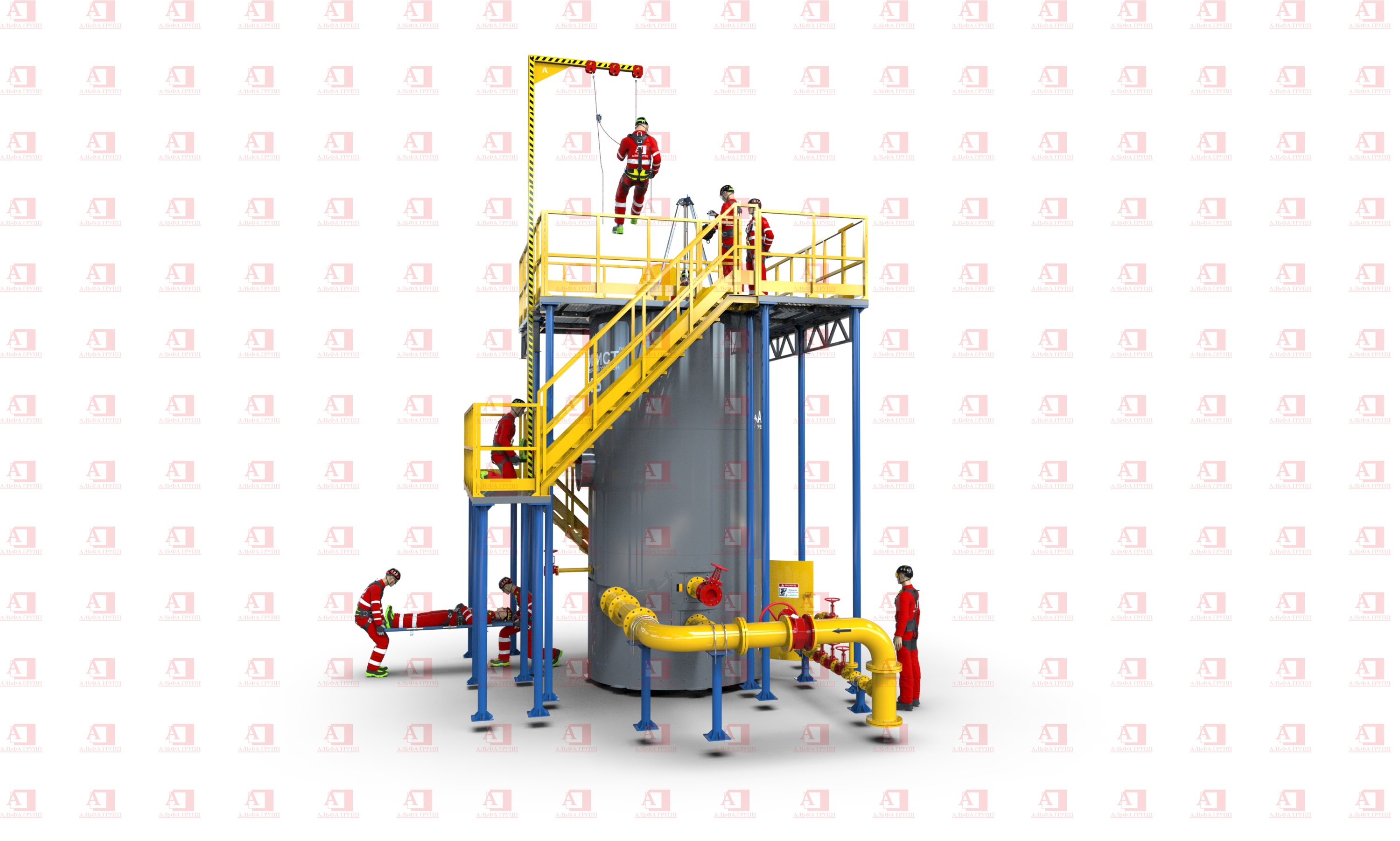 Места интенсивной работы с трипод усилены листами стали и швеллером. Люки и лазы размещены строго симметрично друг под другом для максимального использования высоты комплекса.